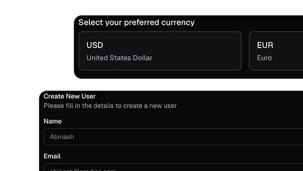 const preferredCurrency = await io.selectInput({ // })if (preferredCurrency === 'USD') {const userDetails = await io.form({ // })}